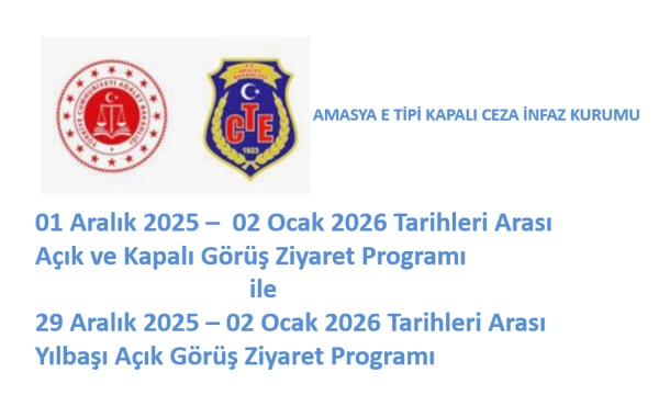 01 Aralık 2025 - 02 Ocak 2026 Tarihleri Arası Açık ve Kapalı Ziyaret Görüş Programı