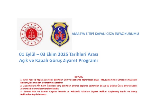 22 - 26 EYLÜL 2025 TARİHLİ 3. KAPALI GÖRÜŞ ZİYARET PROGRAMI | |||||||||