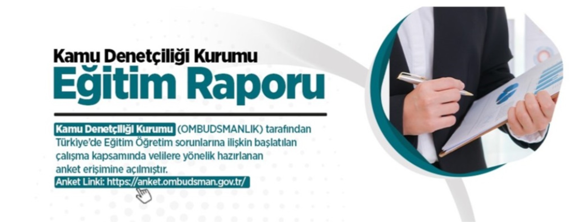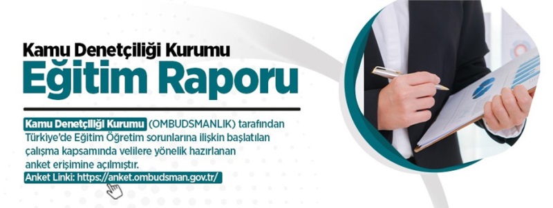 Kamu Denetçiliği Kurumu (OMBUDSMANLIK) tarafından Türkiye'de Eğitim Öğretim sorunlarına ilişkin başlatılan çalışma kapsamında velilere yönelik hazırlanan anket erişime açılmıştır.